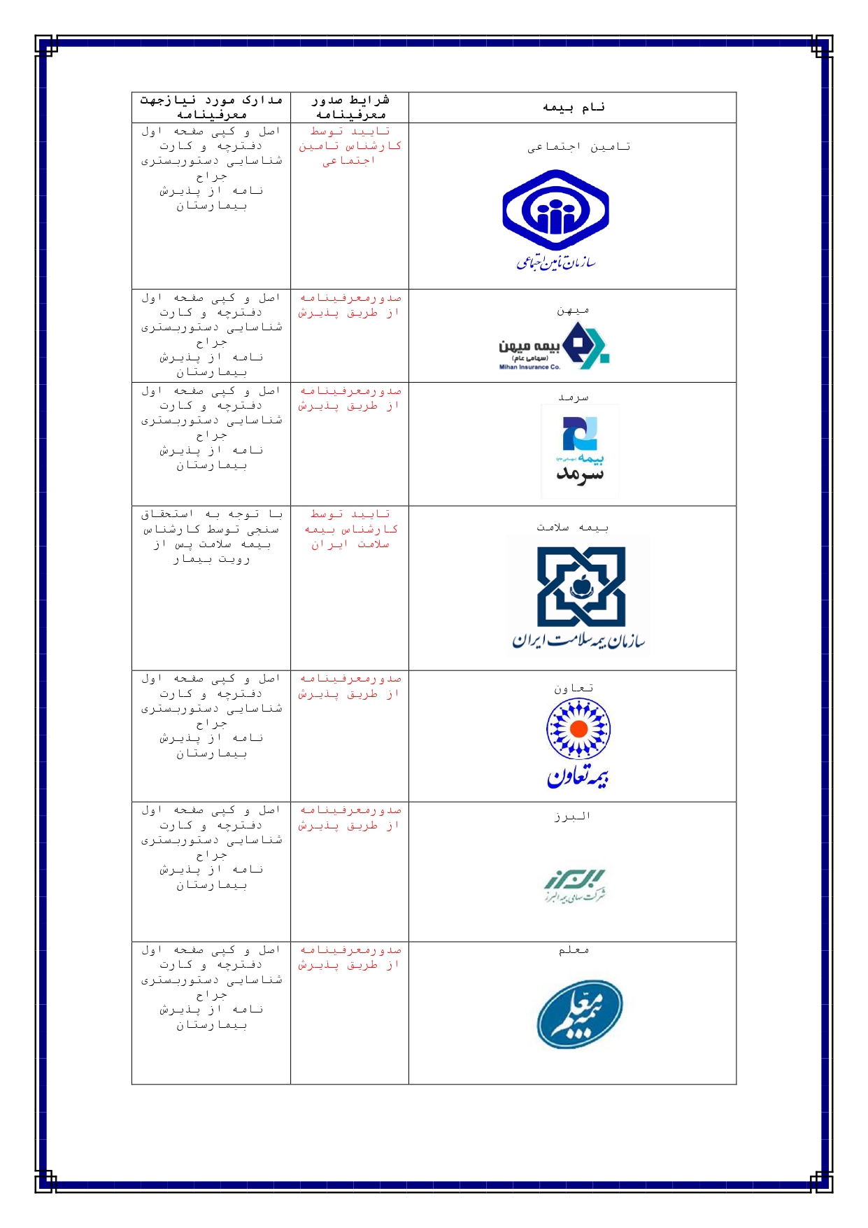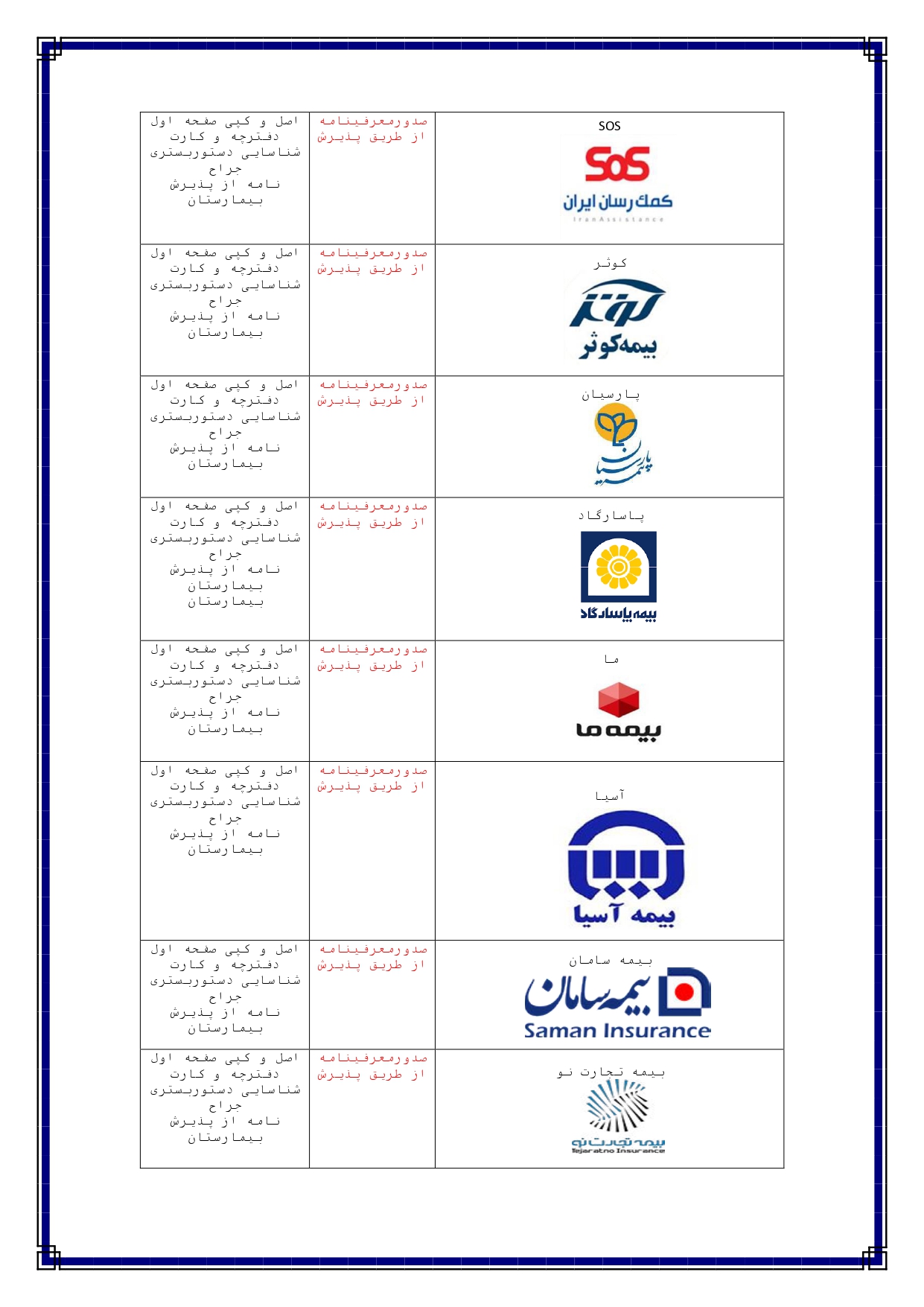 مراکز طرف قرارداد بیمه